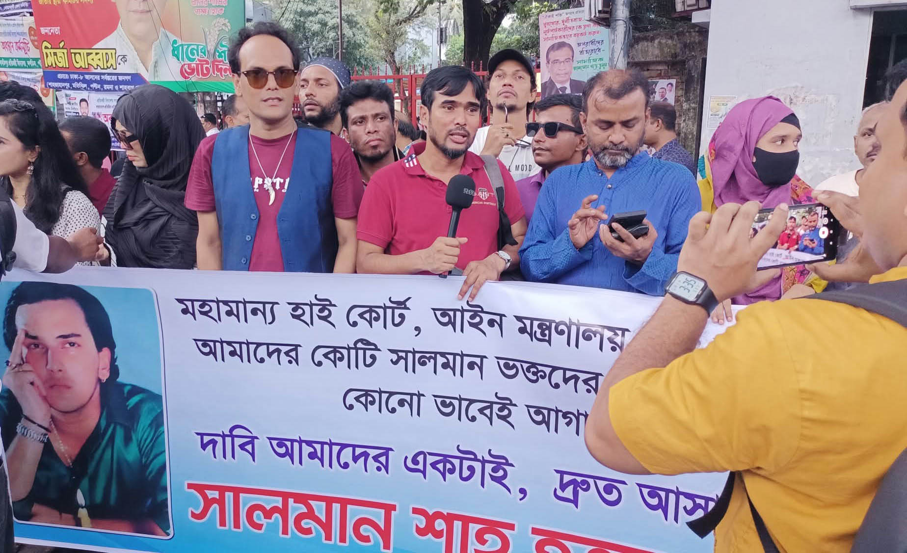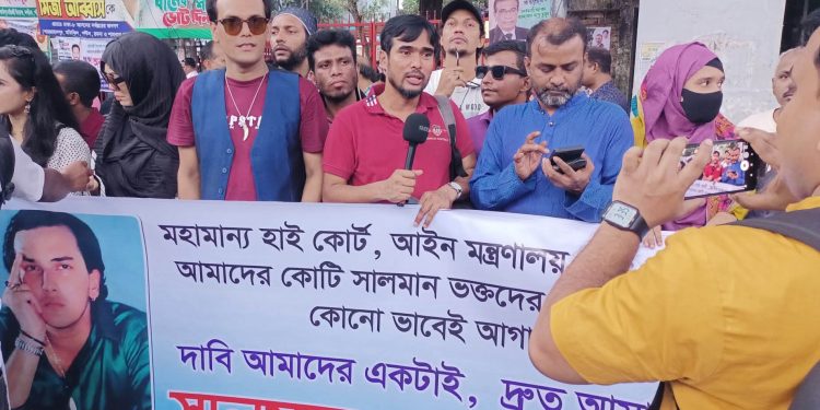 Numerous ardent fans of the late actor Salman Shah gathered at the National Press Club to demand a quick and thorough investigation into his terrible death. On Saturday afternoon, the protesters came from all across the country and filled the area with signs, posters, and pictures of the actor. They chanted strong slogans like “We demand justice for Salman Shah’s murder” and “Our brother rests in the grave—why is the killer still free?”